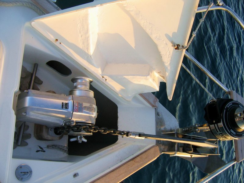 Die elektrische Ankerwinsch ging tadellos. Wegen des tief versenkten Ankerkastens kann man