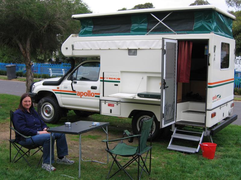 Das Auto Die gute Nachricht ist, unser Auto ist prima und wir haben das erste Mal "gecampt". Gleich werden wir mal ausprobieren, wie es sich in der "Kiste" so schläft. Vorne im Bild sieht man die ausgeklappte Kochstelle, die wir auch schon erfolgreich benutzt haben. Der Campground ... ist sauteuer, aber ok. Allerdings haben wir hier die ersten unfreundlichen Australier kennengelernt, nämlich an der Rezeption. So was von schnippisch. Wenn wir nicht wegen dem Handy noch warten müssten wären wir morgen schon wieder weg.